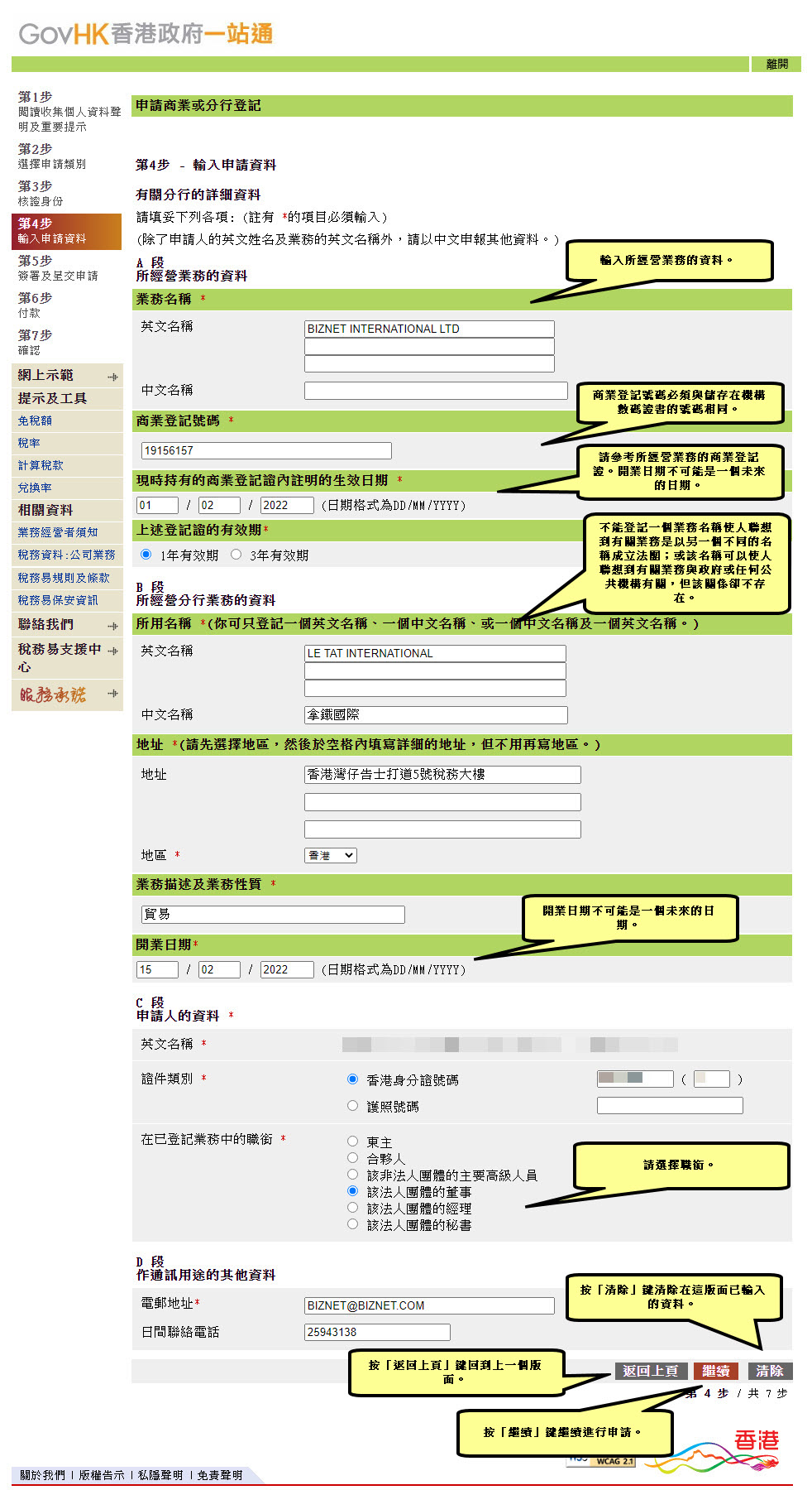 輸入申請資料 (已登記之法人團體或其他非法人團體所經營的分行)