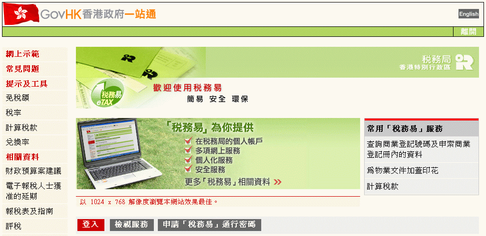 「稅務易」帳戶網上示範 -「稅務易」通行密碼持有人