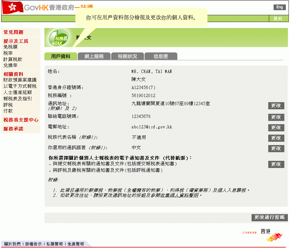 「稅務易」帳戶網上示範 -「稅務易」通行密碼持有人