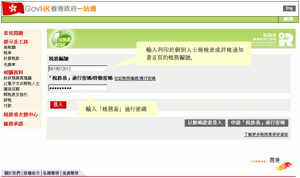 「稅務易」帳戶網上示範 -「稅務易」通行密碼持有人