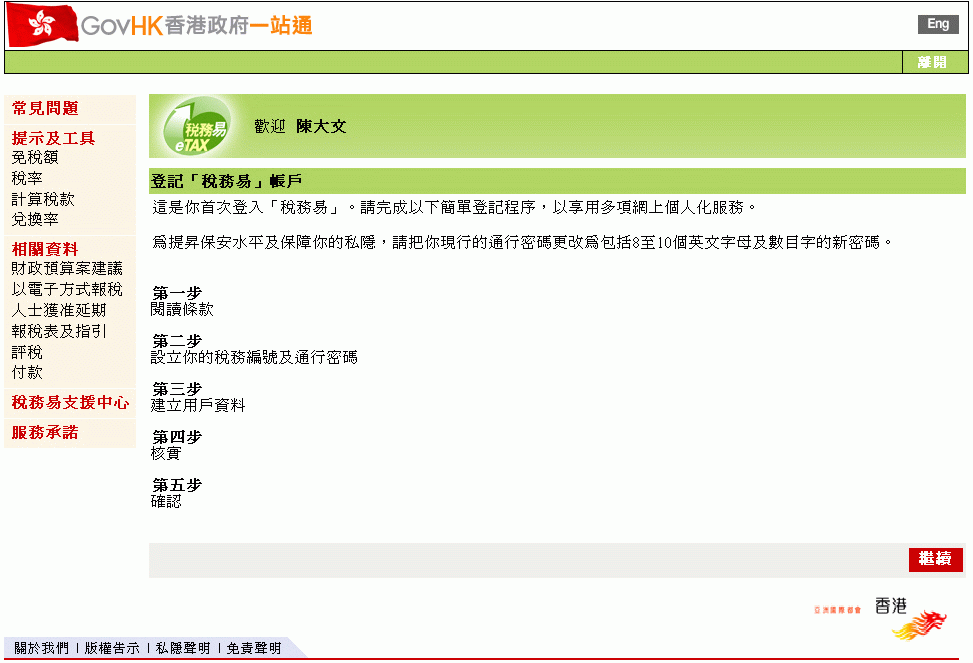 步驟2:設定你的稅務編號及通行密碼