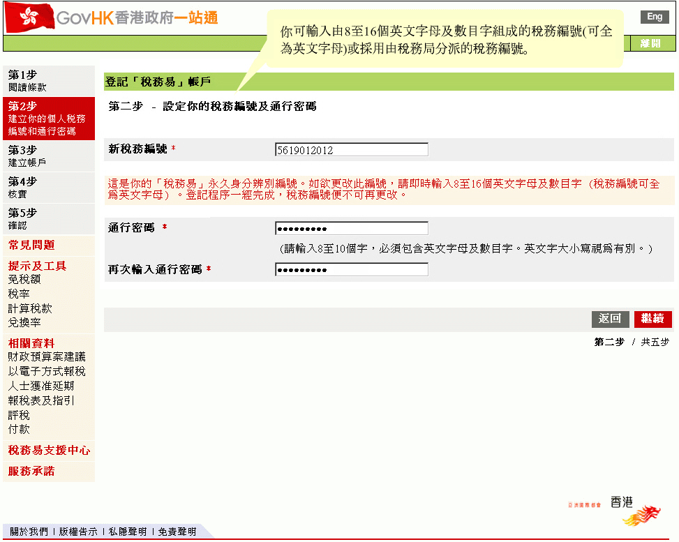 「稅務易」帳戶網上示範 -「稅務易」通行密碼持有人