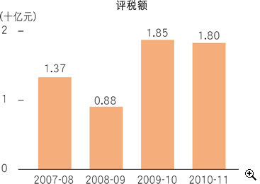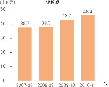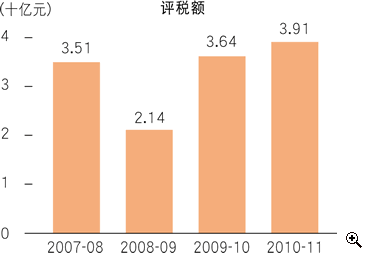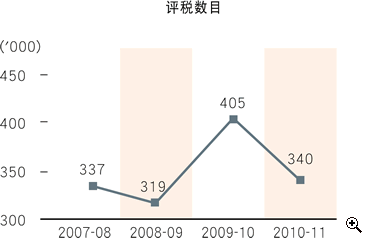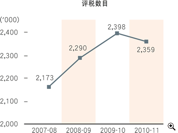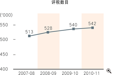 2010至11年度的总评税额较上年度增加8.7%,评税数目较上年度减少1.6%
